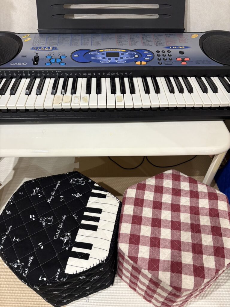 生地は子供たちを連れて安い中から選んでもらってちょうど息子がピアノを