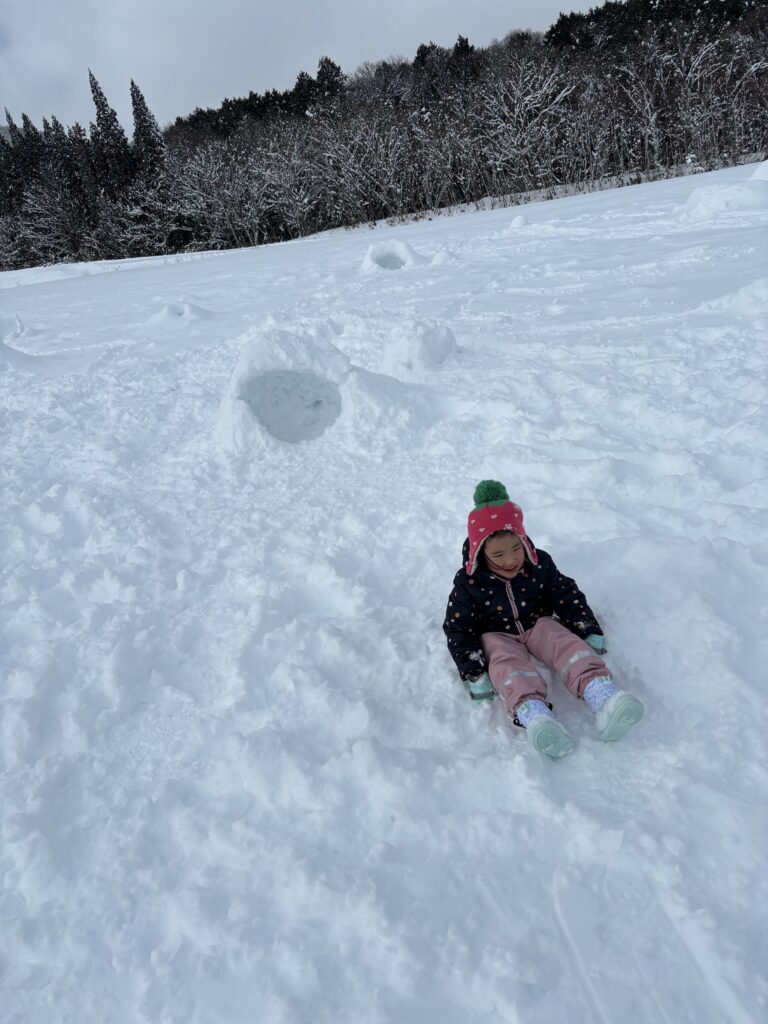 キッズパークでそりに乗って遊んだり、