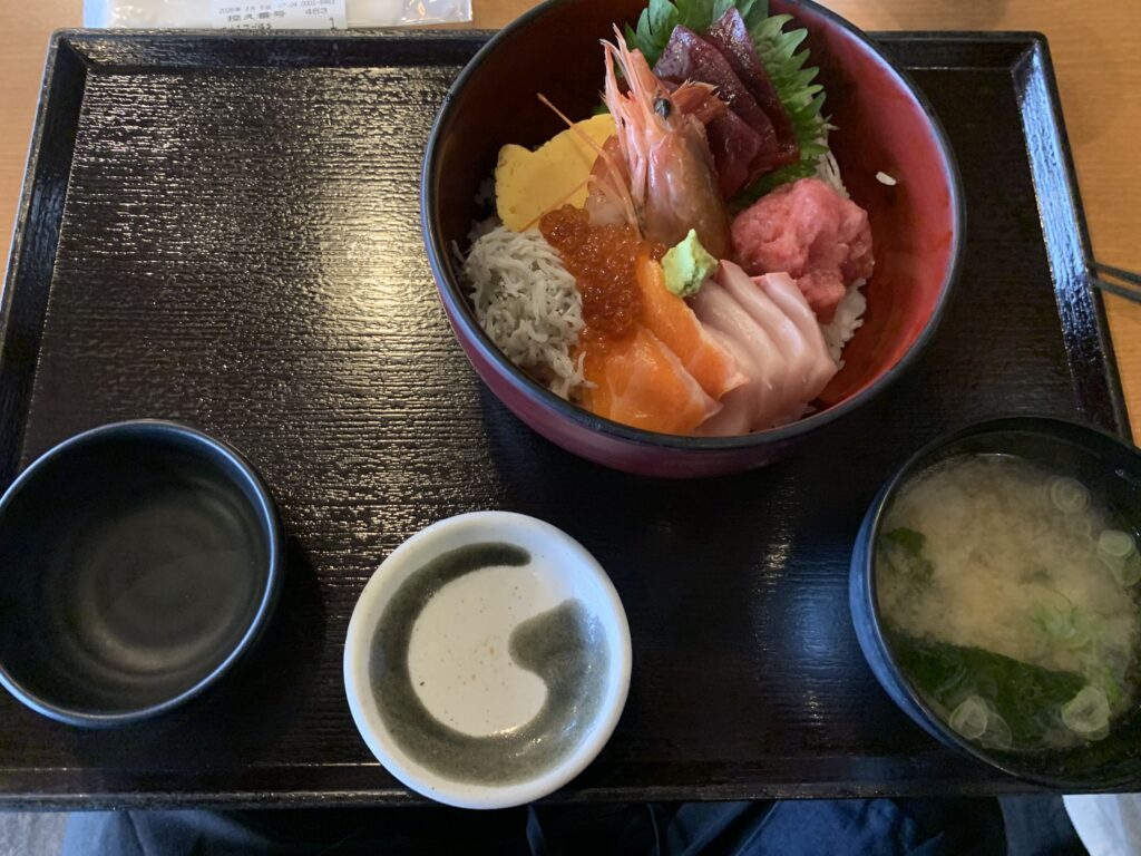 横浜家系ラーメンに始まり、三崎で海鮮丼、鎌倉での食べ歩き、箱根のホテルでビュッフェ、小田原でお餅と、ひたすら食べていました。