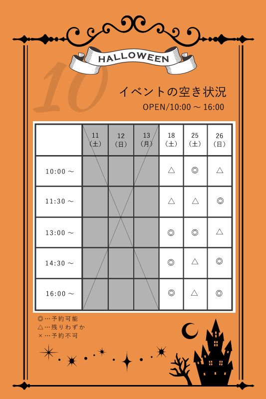 【イベント空き状況(10/14時点)】好評につきご予約をいただいております!来場予約は今がチャンス!
