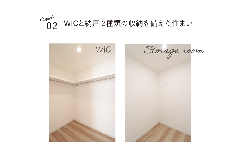 ウォークインクローゼットと納戸の2種類の収納を備え、暮らしの中に“整う心地よさ”を生み出します。