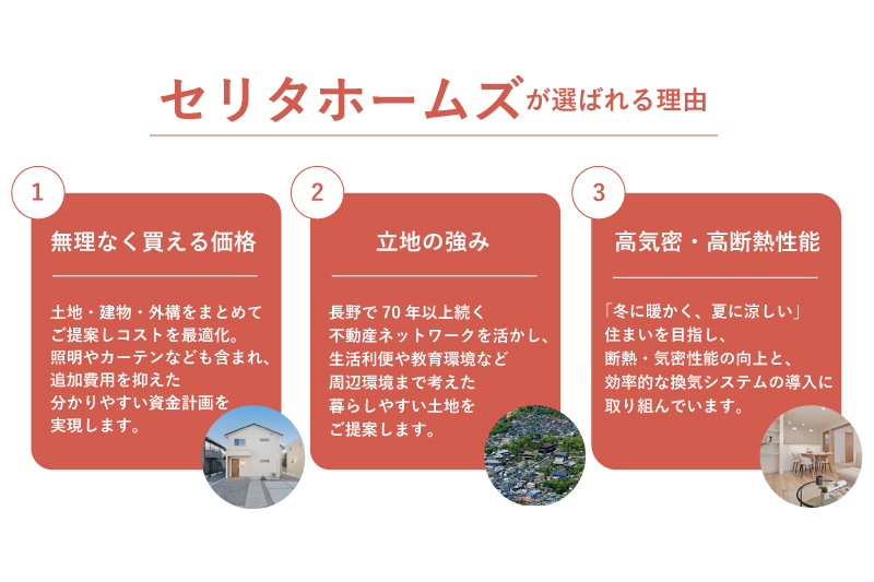 セリタホームズでは、売り土地から今春完成予定の住まいまで幅広くご紹介!