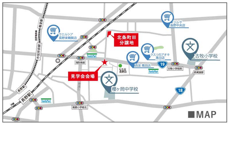【西友日詰店 車約4分】国道18号へアクセスしやすく須坂市や長野市南部への移動もスムーズ。身近に商業施設が揃い、庭スペースの活用でペットとの暮らしにも対応しやすい限定1区画!