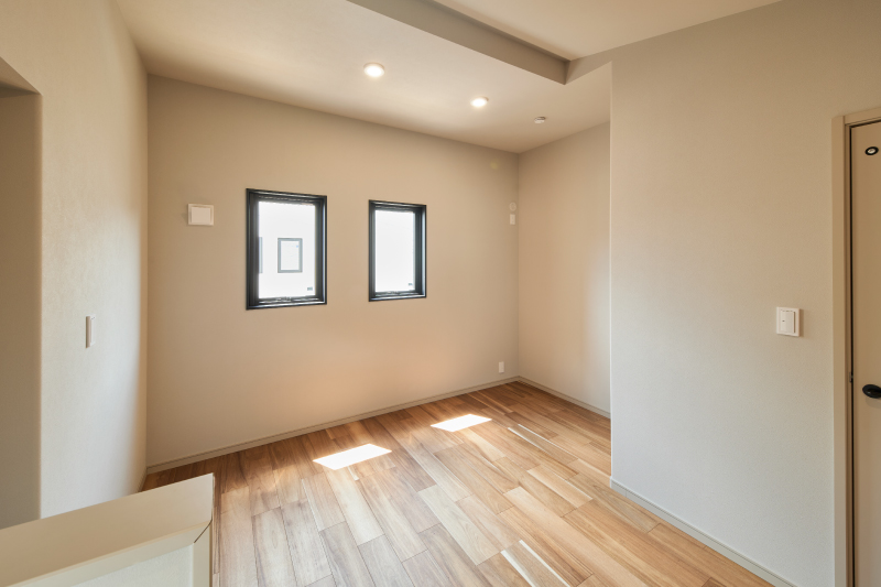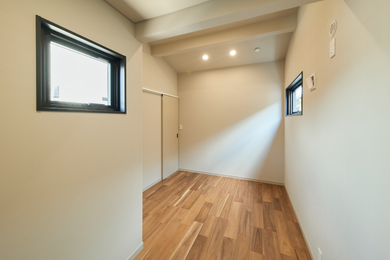 【寝室(6帖)】高窓から自然光がふんわりと差し込み、穏やかな時間を過ごせる寝室です。