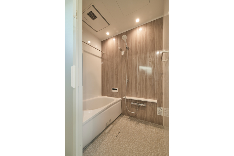 【浴室】やさしい木目の風合いが空間にあたたかさと落ち着きを与えてくれる浴室です。