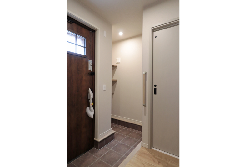 【玄関】来客時も生活感を見せにくい土間収納付きの玄関です。