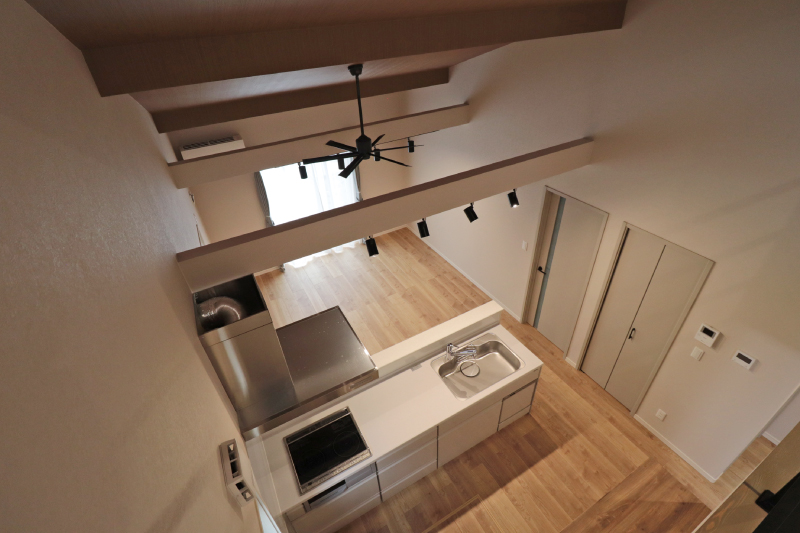 【LDK(12帖)】ロフトと吹き抜けを組み合わせた、立体的なLDK空間です。