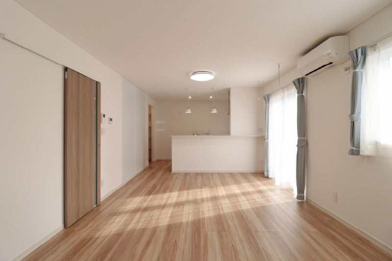 【LDK(18帖)】ソファやダイニングの配置を選びやすい、レイアウトの自由度が高いLDKです。