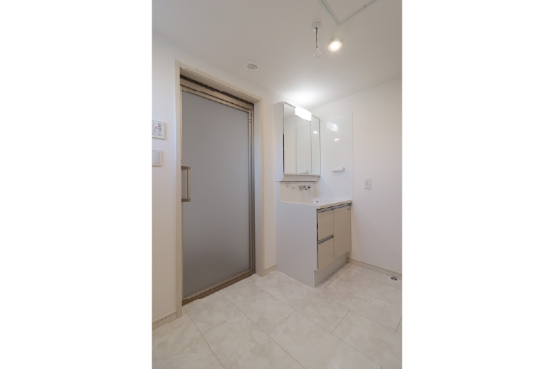 【洗面脱衣室】身支度と洗濯が重なっても使いやすい、ゆとりのある洗面脱衣室です。