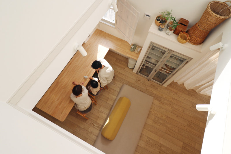 【吹き抜け】空間を縦につなぐことで、家族の存在が身近に。 それぞれの時間を過ごしながらも、孤立しない間取りです。