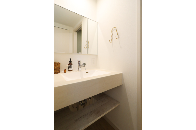 【独立洗面台】家族が入浴中でも気兼ねなく使えるセパレート設計。 朝の支度もスムーズに進みます。