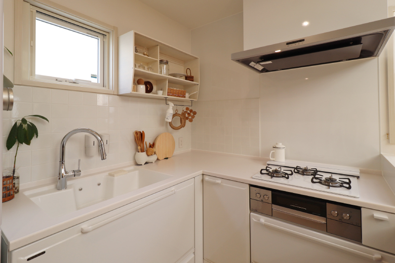 【キッチン】調理・洗い物・盛り付けまでの移動距離を短縮したL字キッチンで、家事の負担を軽減します。