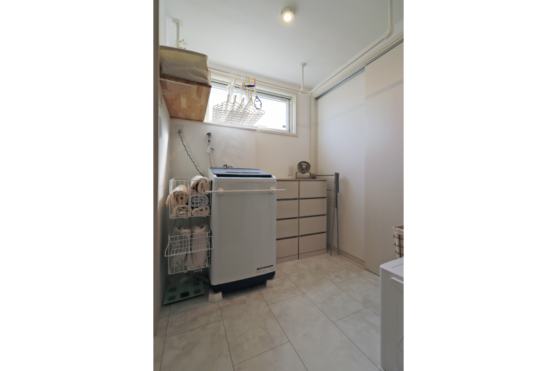 【脱衣室】物干しバーを設置し、天候に左右されない室内干しスペースに。 日々の洗濯を効率化する設計です。