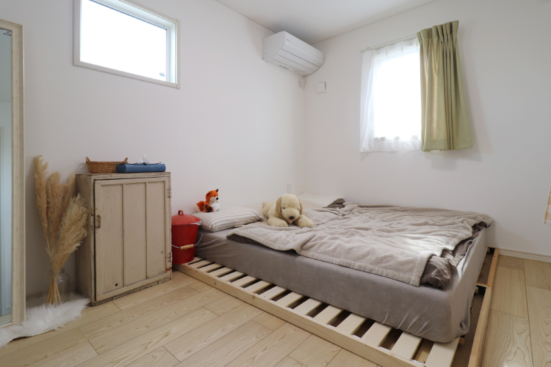 【小上がり洋室】一段上がった空間が、ちょうどいいプレイスペース。遊び・お昼寝・読み聞かせまで対応できる場所です。