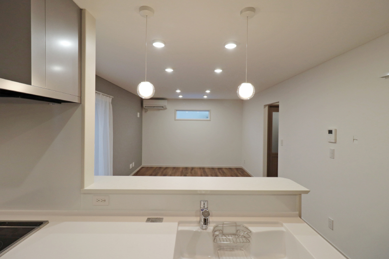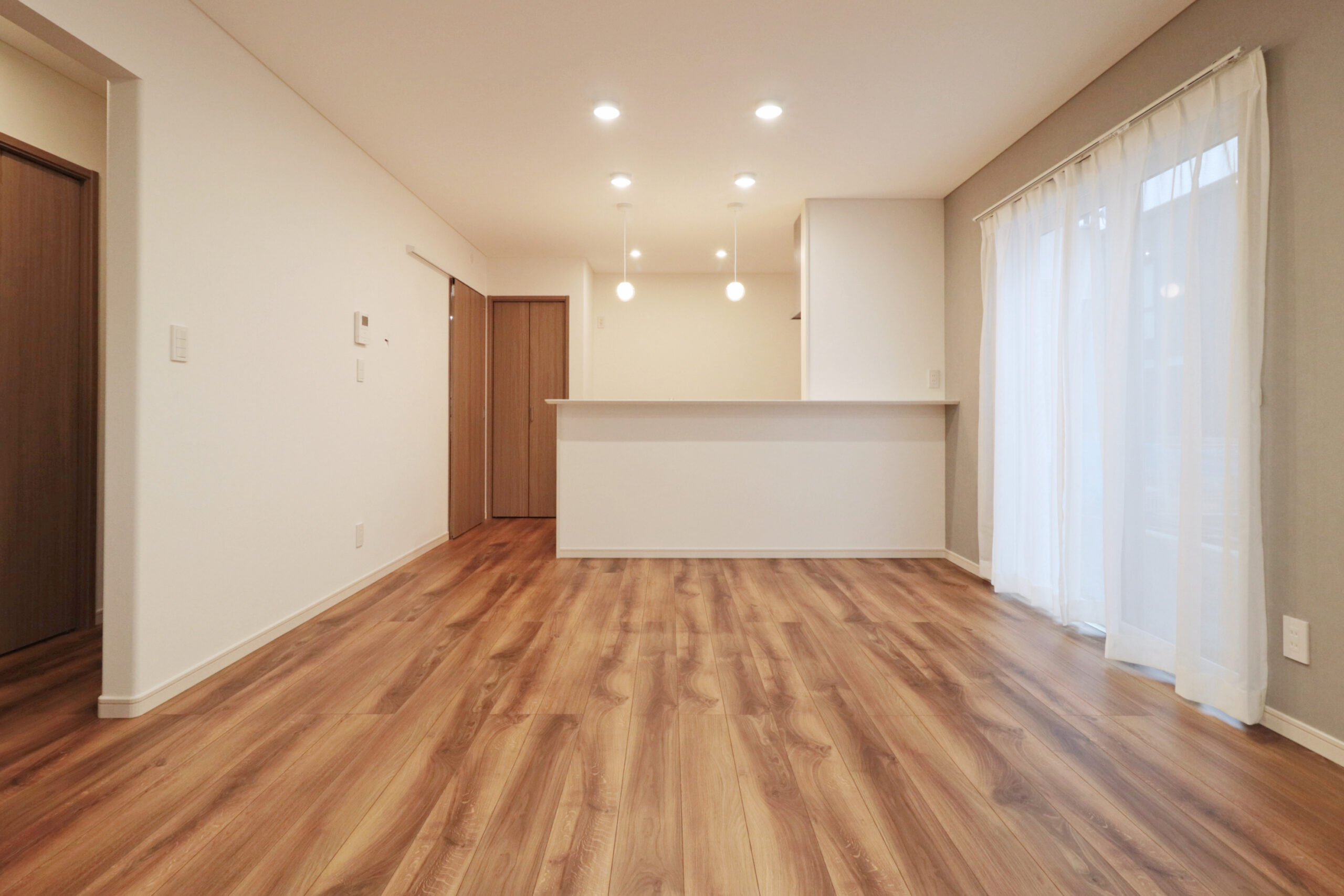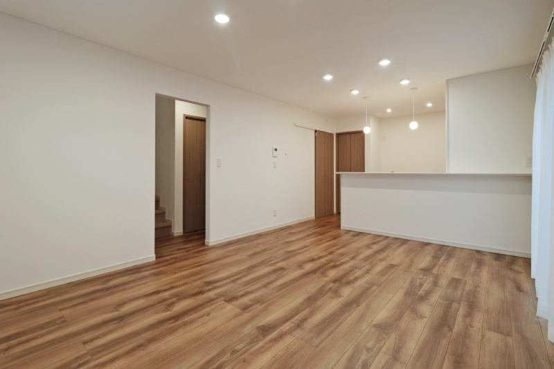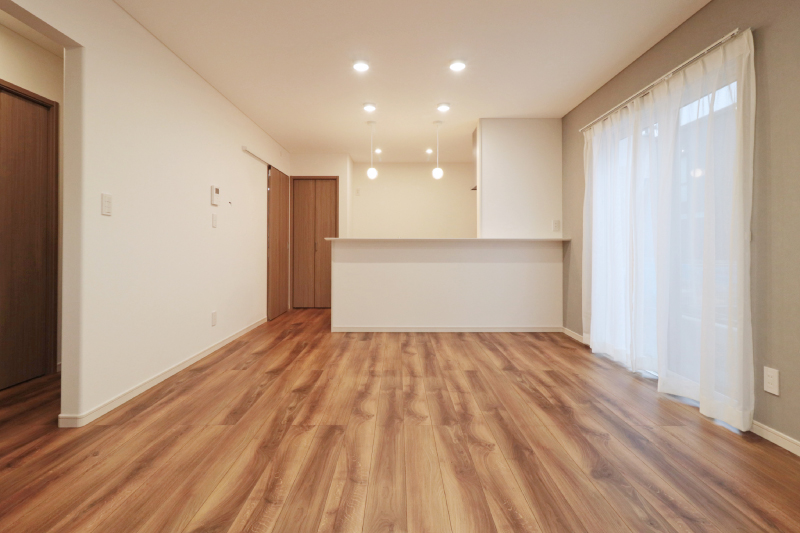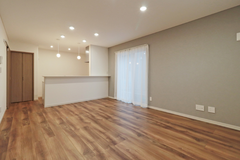 ドレープカーテン、レースカーテン、全室LED照明、上水道、下水道、リビングエアコン、24H換気システム、システムキッチン、IHクッキングヒーター、カウンターユニット、食器洗い乾燥機、ハイブリッド給湯、LPG、追い焚き、ウォシュレット、暖房便座、バルコニー、TVドアホン、外構、駐車場コンクリート施工2台分、フラット35S適合、建物保証、地盤保証