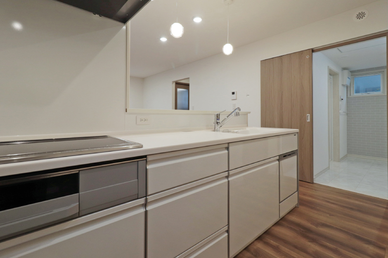 木目のアクセントが映える、デザイン性と家事ラク動線の住まい