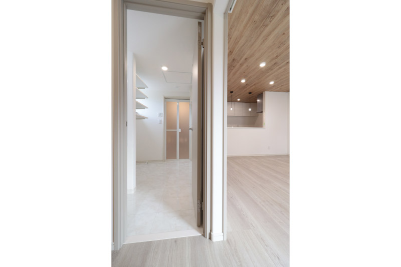 洗面室からキッチン、リビングへとつながる回遊動線がスムーズで、家事の負担を軽減。各部屋には収納をしっかり確保し、いつでもすっきり整った空間を保てます。