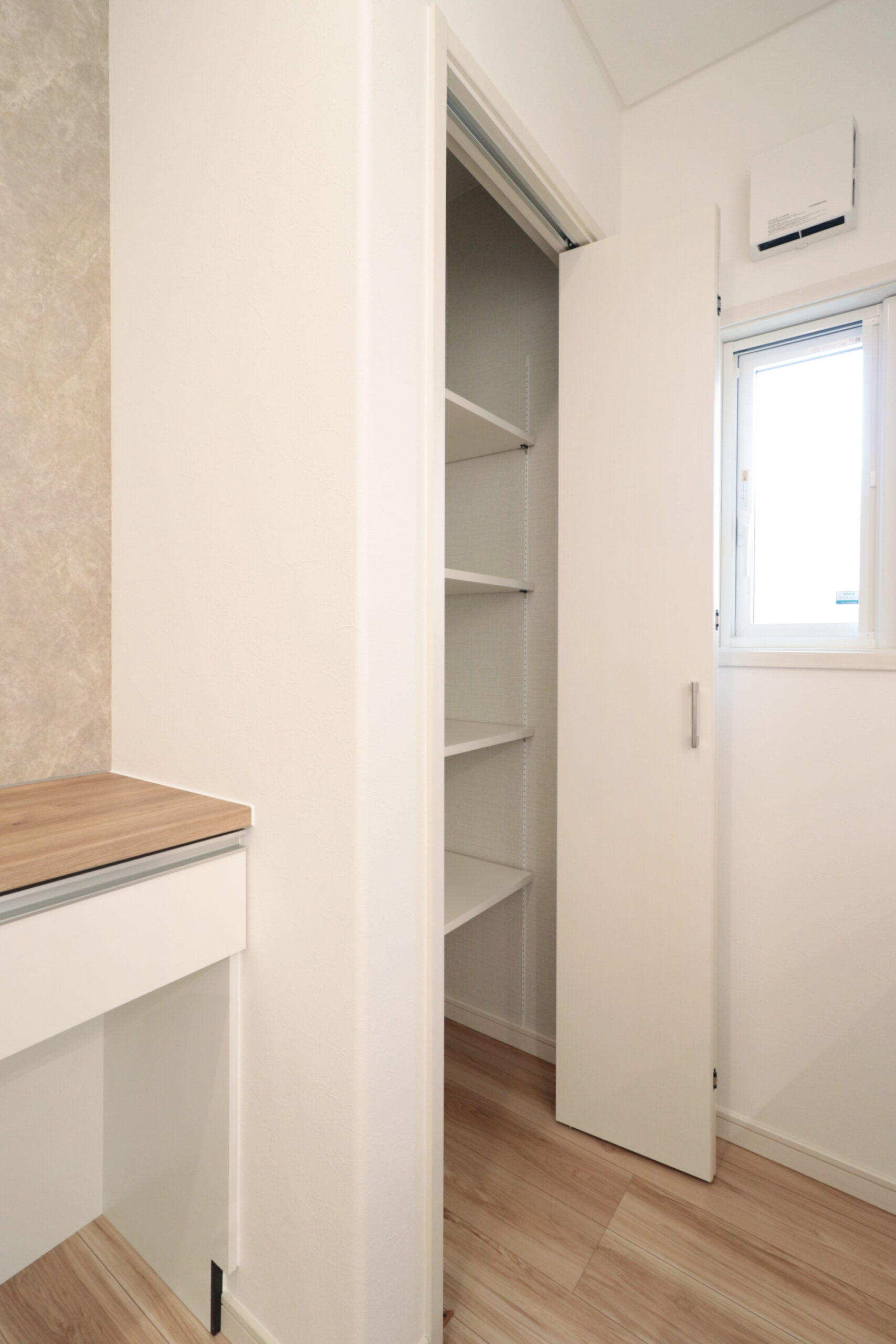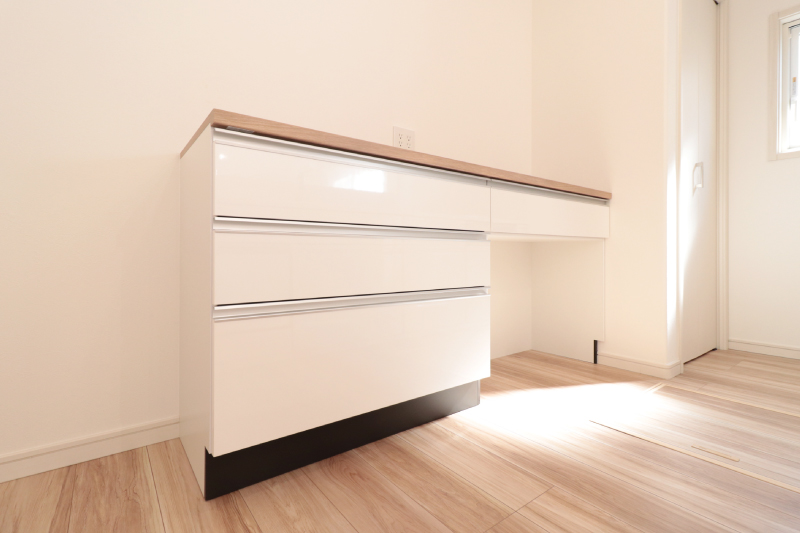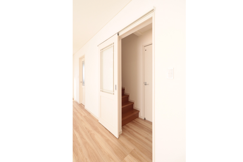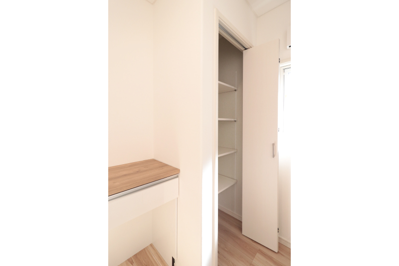 日常使いの衣類や小物はウォークインに、季節家電や大型の荷物は納戸に整理できるため、生活空間をすっきりと保てます。使う場所ごとに収納を分けられることで、片付けやすく、暮らしの動線もスムーズに。