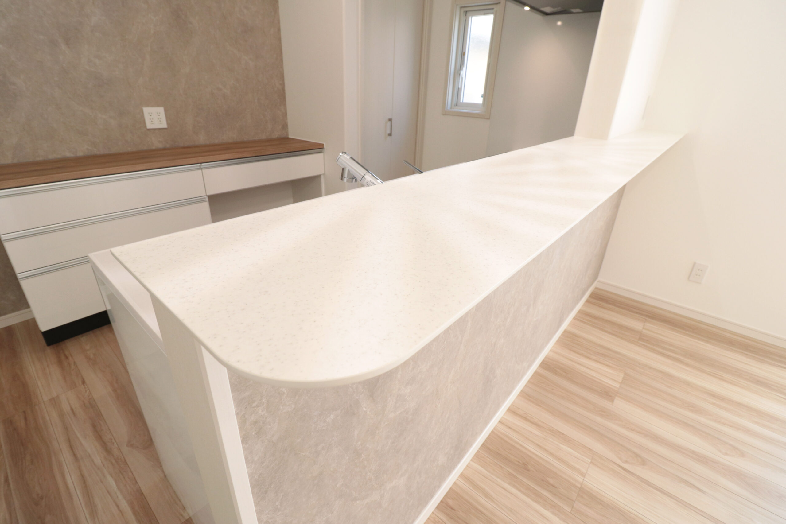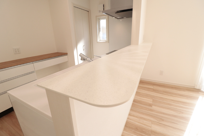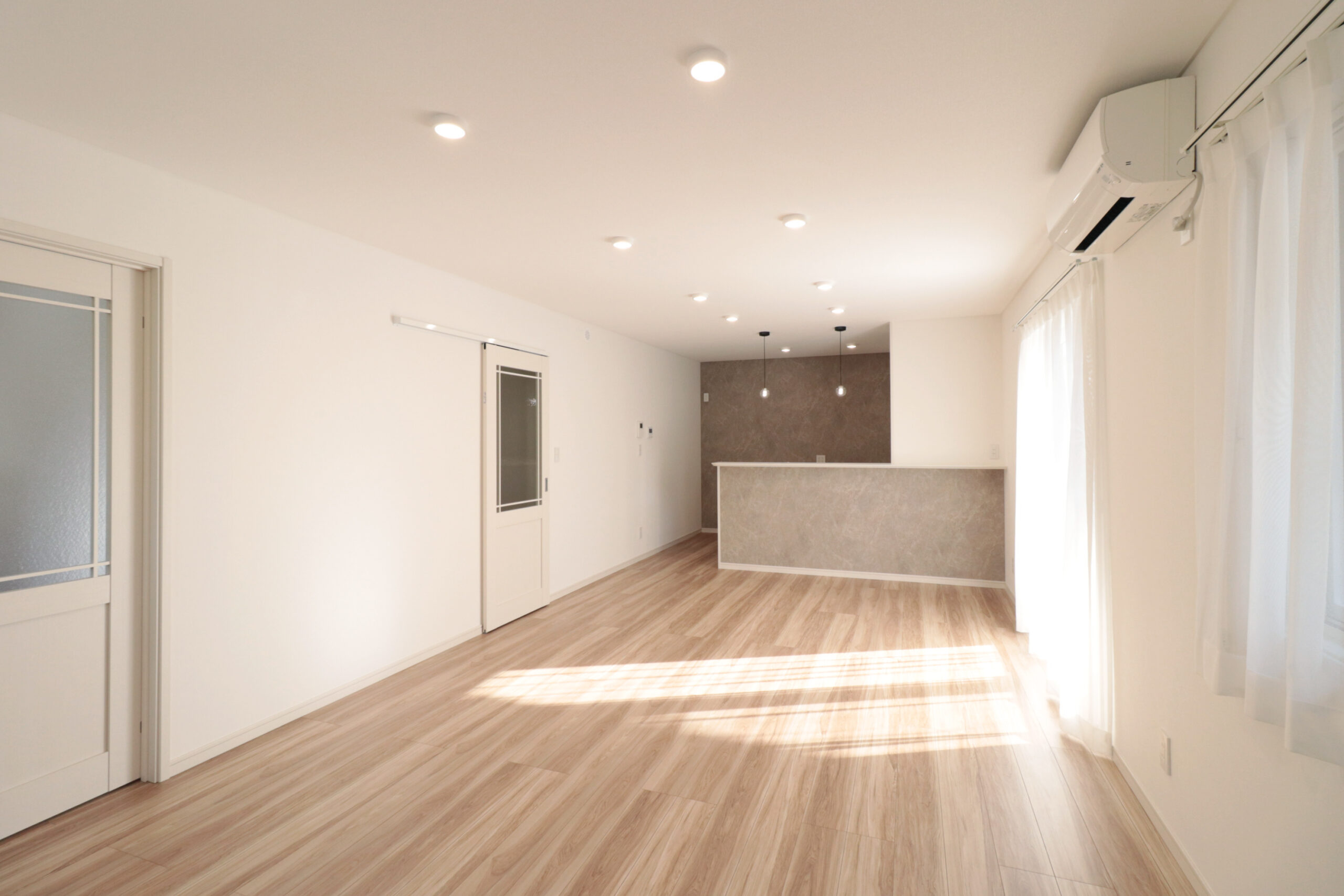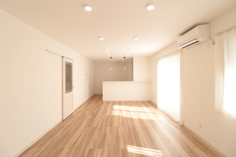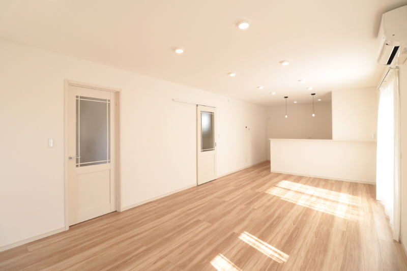 ダイニングセットやソファを置いても動線にゆとりがあり、心地よい光が差し込む明るい空間です。広さと開放感を兼ね備えた、家族のくつろぎを育むLDKです。