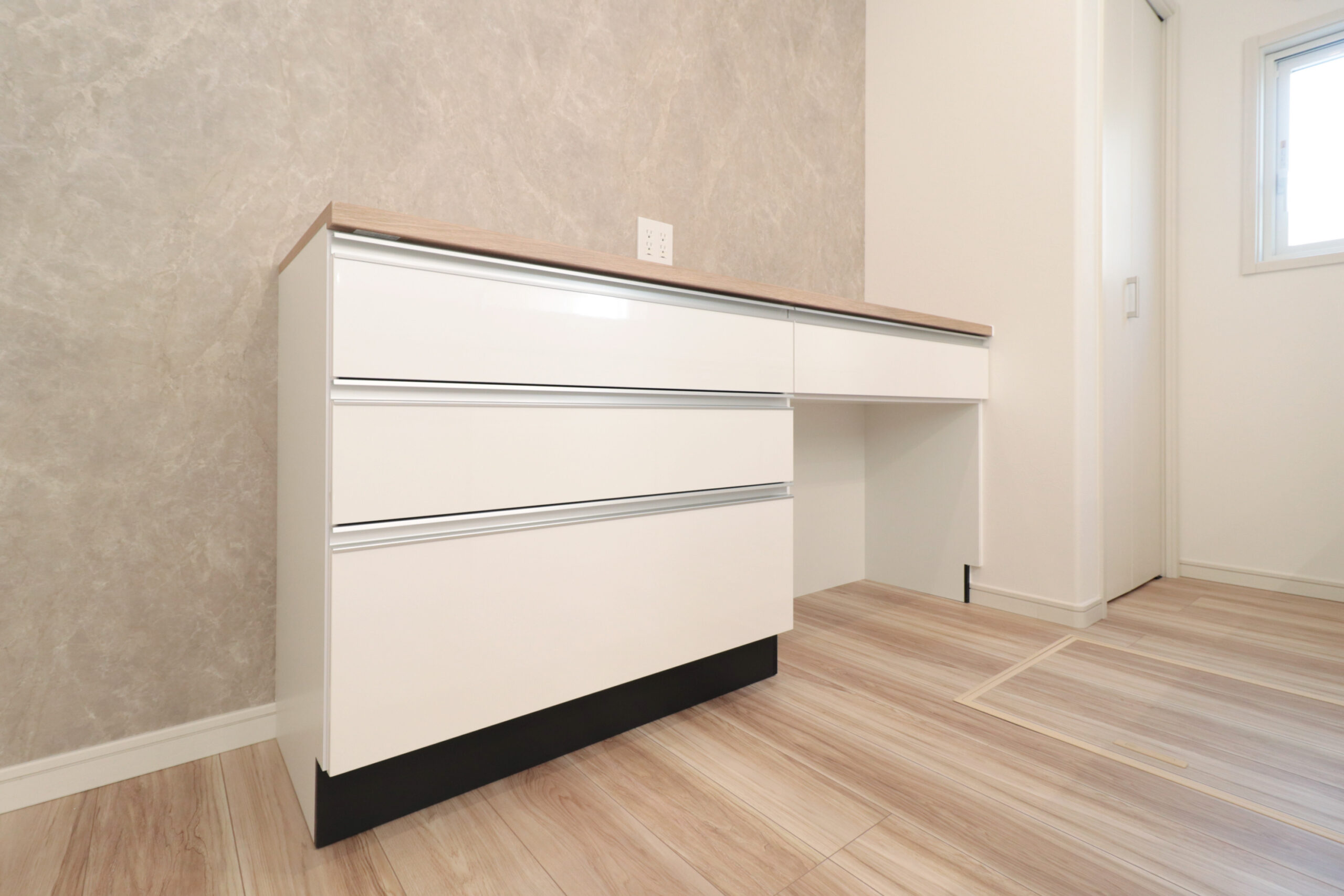 木目の床と白い壁が織りなす、すっきりとしたナチュラル空間。