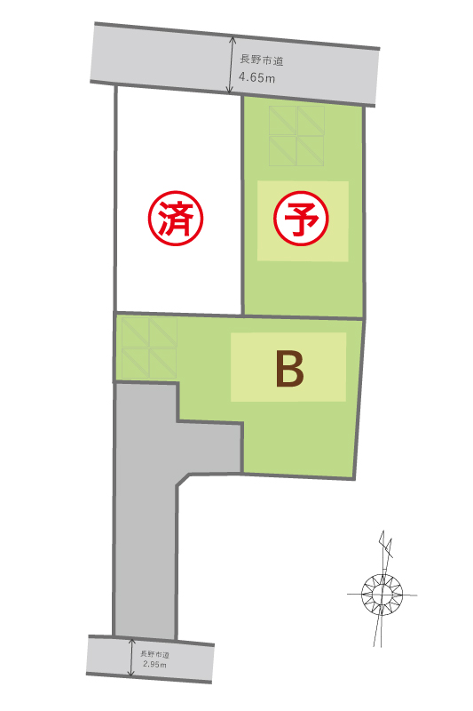 長野市道 4.65m(C区画)、長野市道2.95m(B区画)