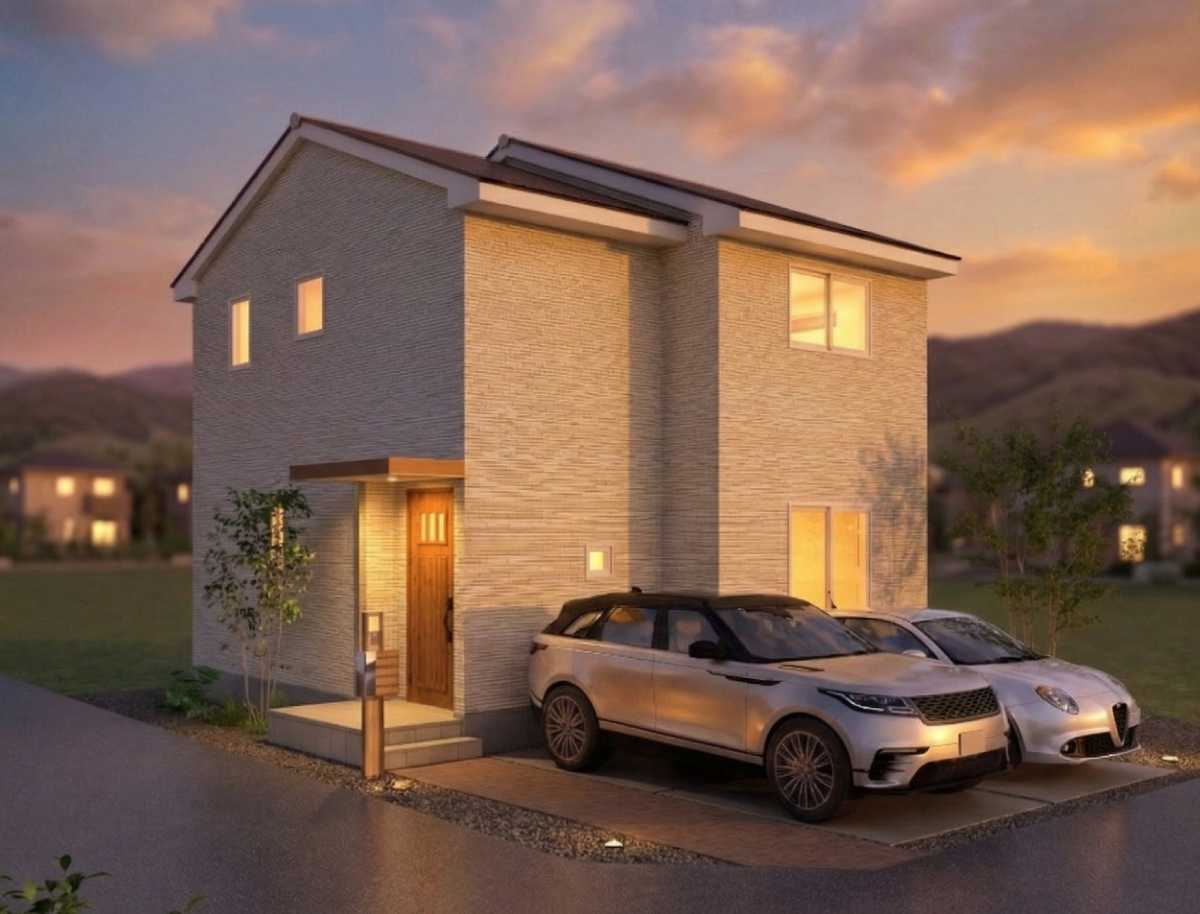 A棟は、家事動線をコンパクトにまとめた15.6帖のLDKと、主寝室+2つの洋室を備えた、使いやすい2階建てプラン。2026年7月完成予定で、月々のお支払いは7万円台~です。