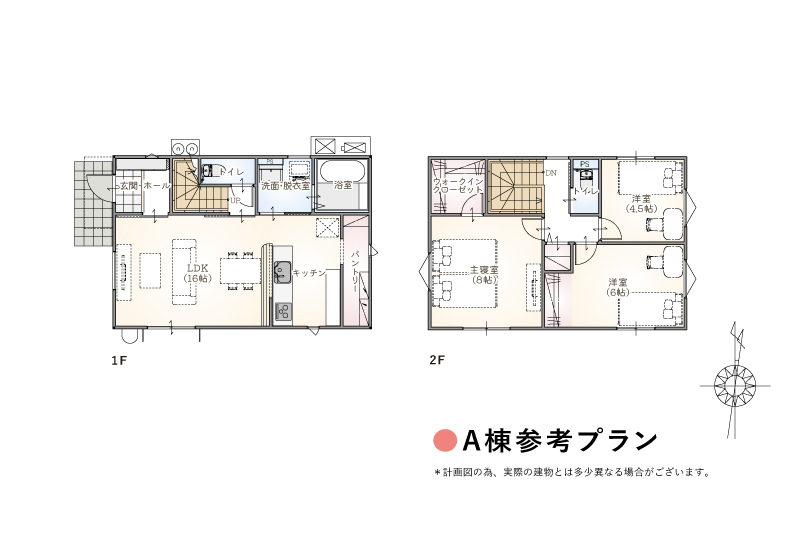 〈参考プラン〉1階床面積:44.71㎡ (13.52坪) 2階床面積:44.71㎡ (13.52坪) 延べ床面積:89.42㎡ (27.04坪) 建物価格:2,050万円(税込)