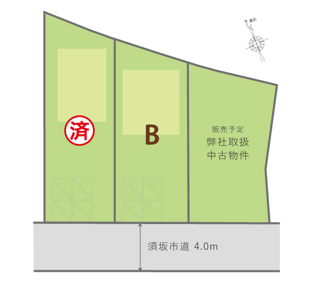 駐車3台可能。月々7万円台~のお支払いでマイホームが叶う区画です。
