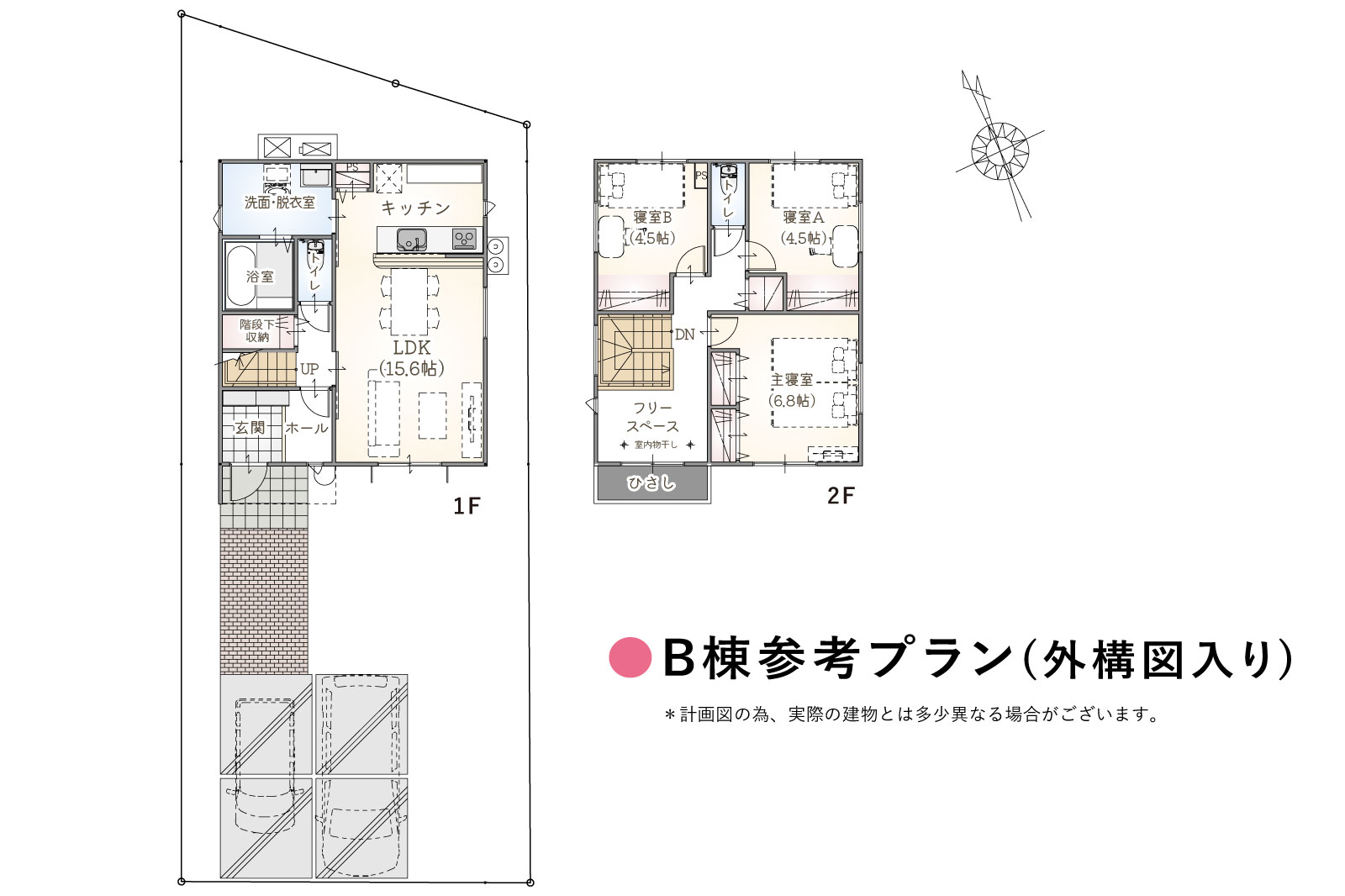 ※【B棟の場合】頭金 0円/ボーナス払い 年間:100,000円(借入条件:変動金利0.9%、借入期間40年間)