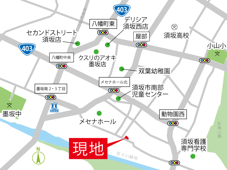 臥竜公園まで徒歩10分。須坂市動物園やメセナホールも身近にあり、四季を感じながらのびのび子育てができる環境です。さらにデリシア須坂西店まで車約3分と日々の買い物もスムーズ。子育ても、日々の暮らしやすさも大切にできる立地です。