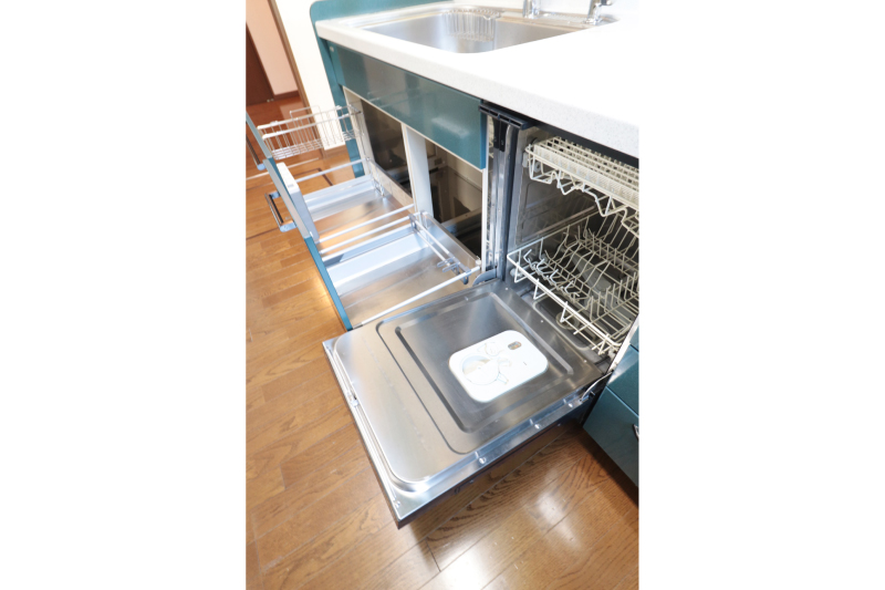 リビングは南向きで採光◎。床暖房で冬も快適に過ごせます。食洗器やシンクダウン式吊戸棚、カップボードなど、家事を助ける設備が整い、都市ガス仕様で経済的です。