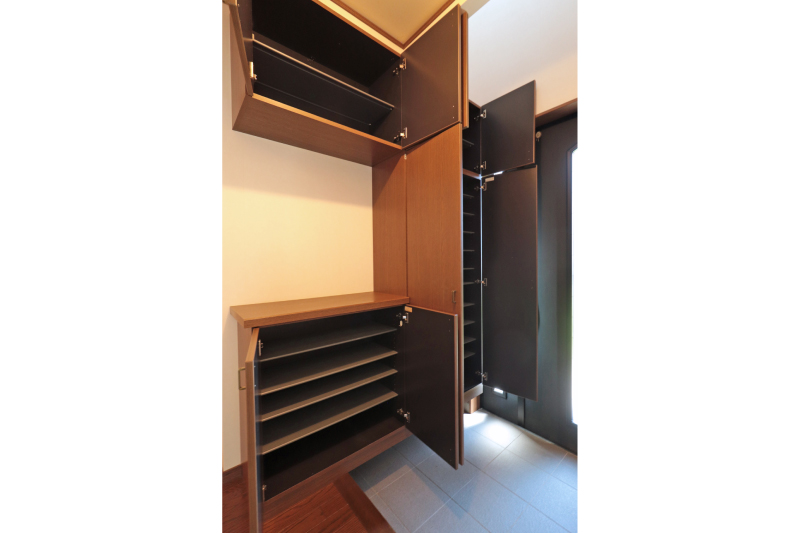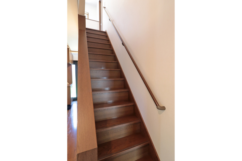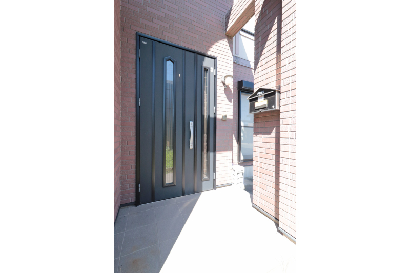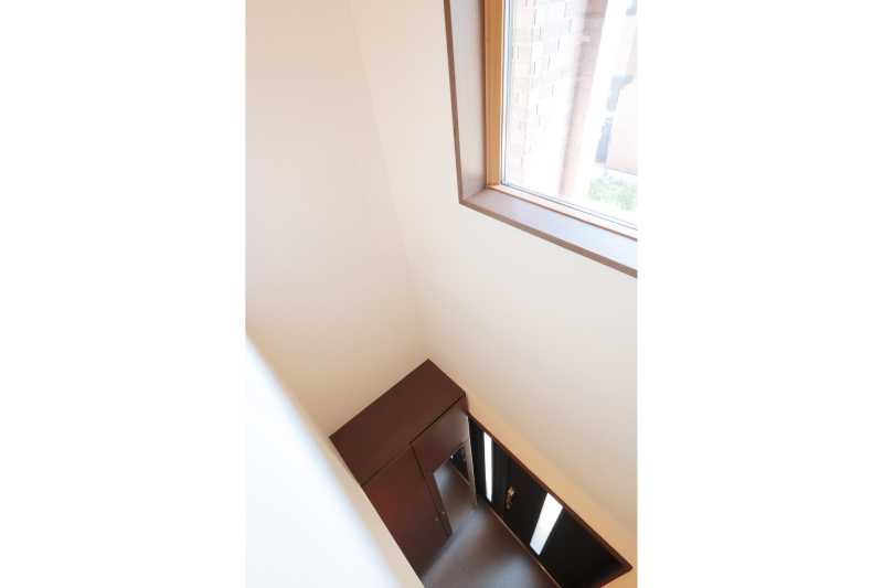 北側6m道路に面した落ち着いた立地。庭には鉄棒や物置もあり、子どもの遊びや趣味に活用できます。1階の窓には雨どいシャッターを設置し、防犯性や強風時の安心の設計です。